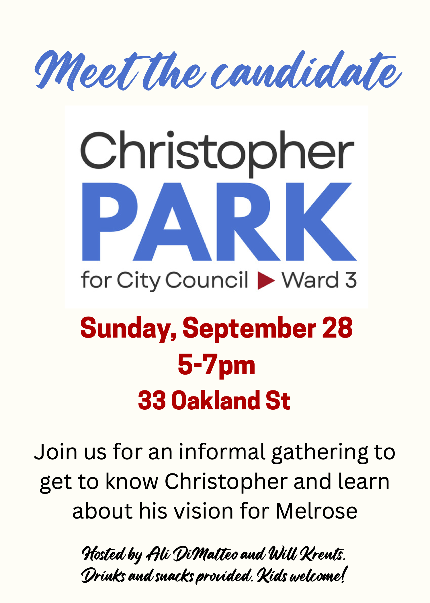 Invitational flyer for Christopher for Melrose, Ward 3